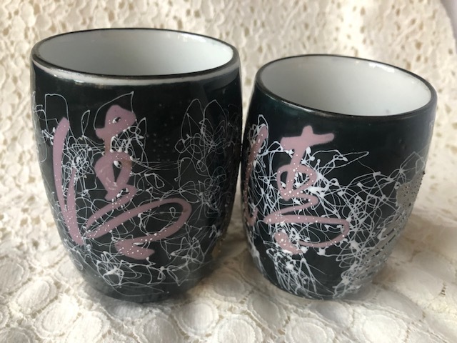 - 湯呑 湯飲み 清水 夫婦 ペア 昭和 夫婦揃い 茶器 煎茶道具 ドリッピング模様 文字入り