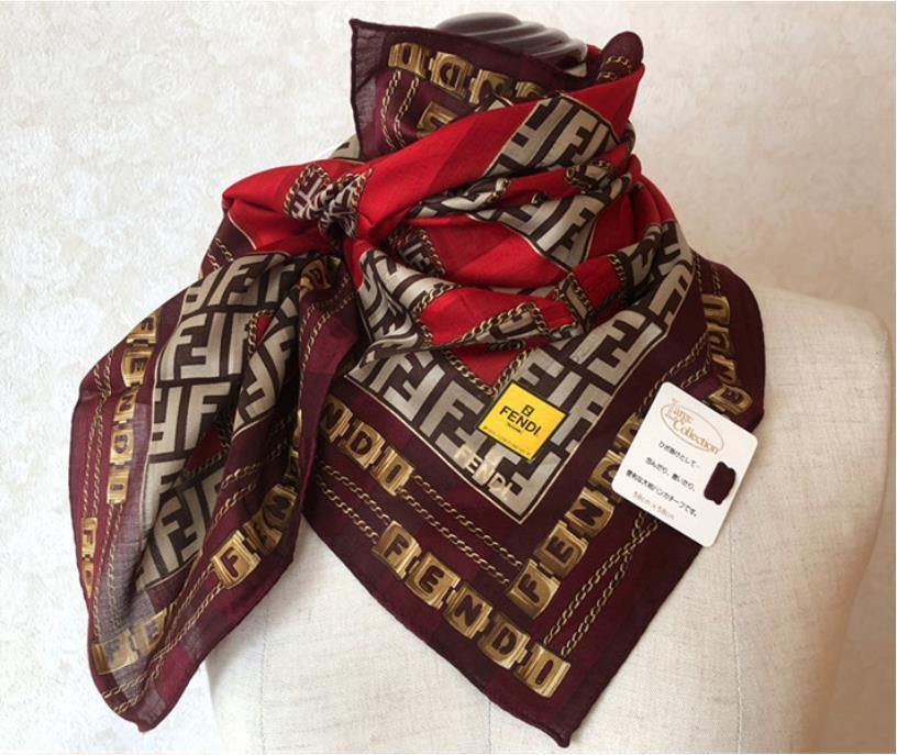 - 稀少柄 新品FENDIフェンディ◆ダブルズッカ柄&英字ロゴストライプ 大判ハンカチ ミニスカーフ★膝掛け (0210E22せ3900)