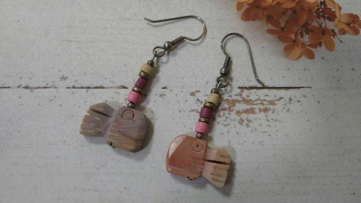 - □魚?モチーフ・揺れるニュアンスカラービーズ・ピアス□