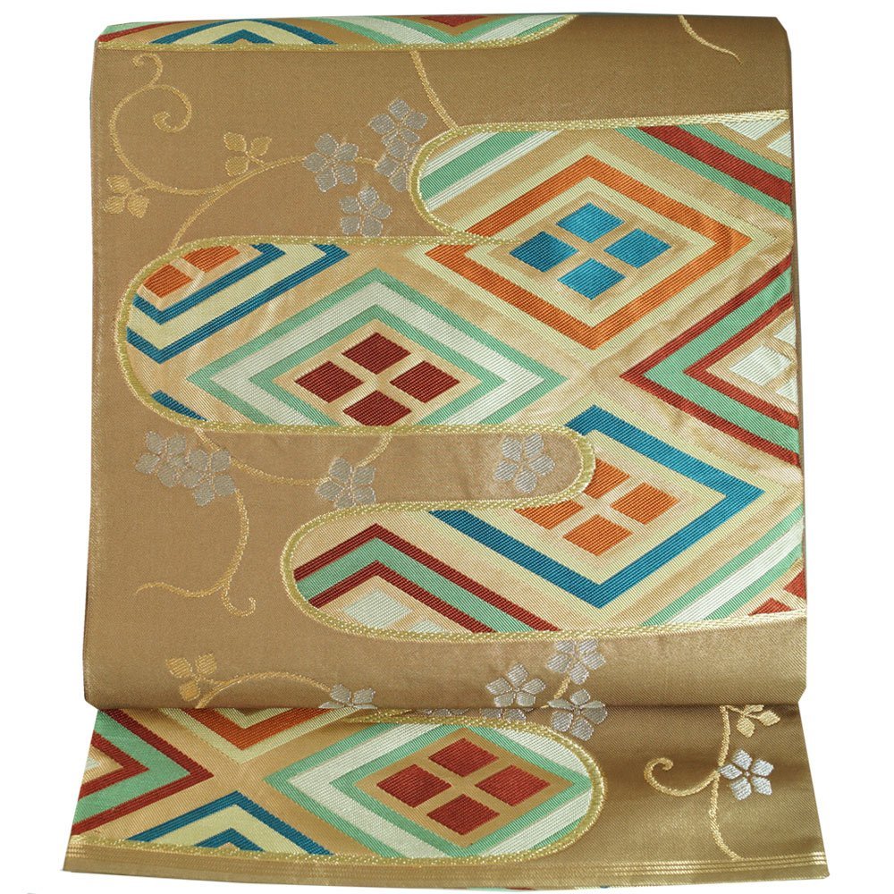 - 袋帯 西陣 川島織物 エ霞に四ツ目菱、唐花模様 金糸 六通柄 本袋帯 西陣織 川島 中古 リサイクル着物 フォーマル 帯 京都きもの天陽