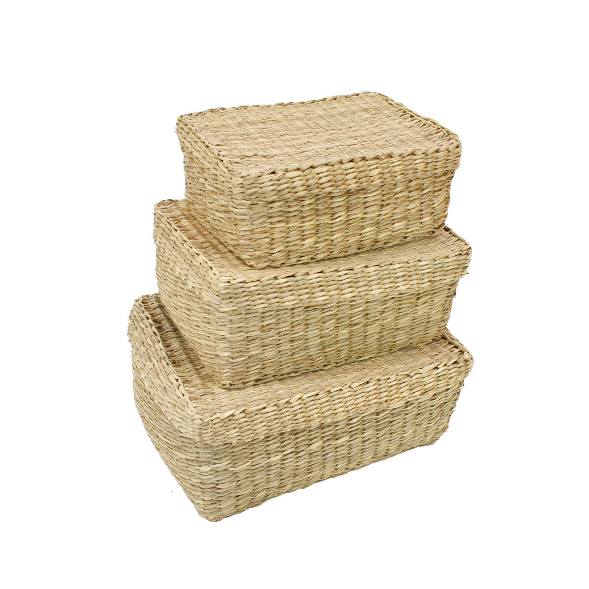 - シーグラス スクエア蓋付き バスケット 3セット ベトナム製