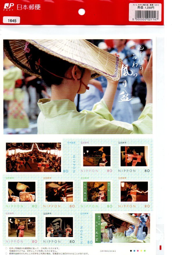 - 1645★フレーム切手 越中八尾 おわら風の盆 80円x10★