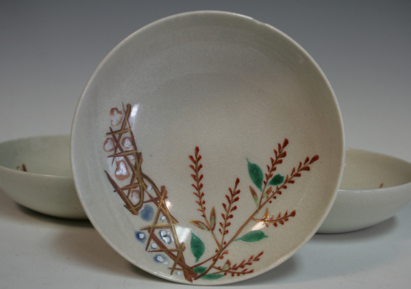 - *青**【SALE】【即決】古い京焼草花文小皿/傷あり/3客(四寸皿豆皿銘々皿セット民芸生活骨董食器古美術K366