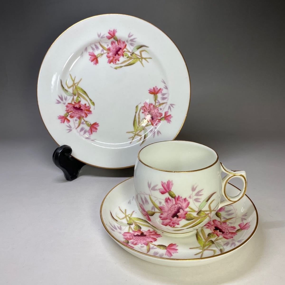 > 19世紀 アンティーク カップ&ソーサー フラワー Flower ティーカップ コーヒーカップ 英国 イギリス 王冠 刻印 トリオ 西洋アンティーク