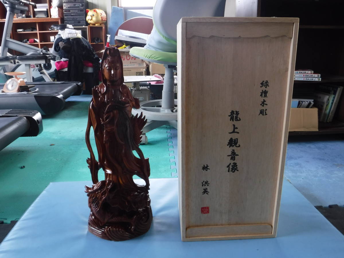 - 【中古】 林 洪英作 緑壇木彫り 観音菩薩 龍上観音像