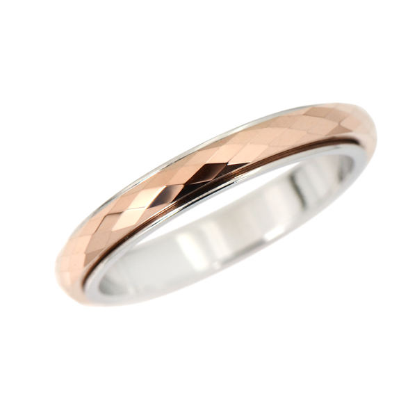 > ★人気★変色無★金属アレルギー&温泉&海水浴OK★スピナー回転★タングステン&ステンレスリング★シルバー&ピンクゴールドダイヤ柄カット★