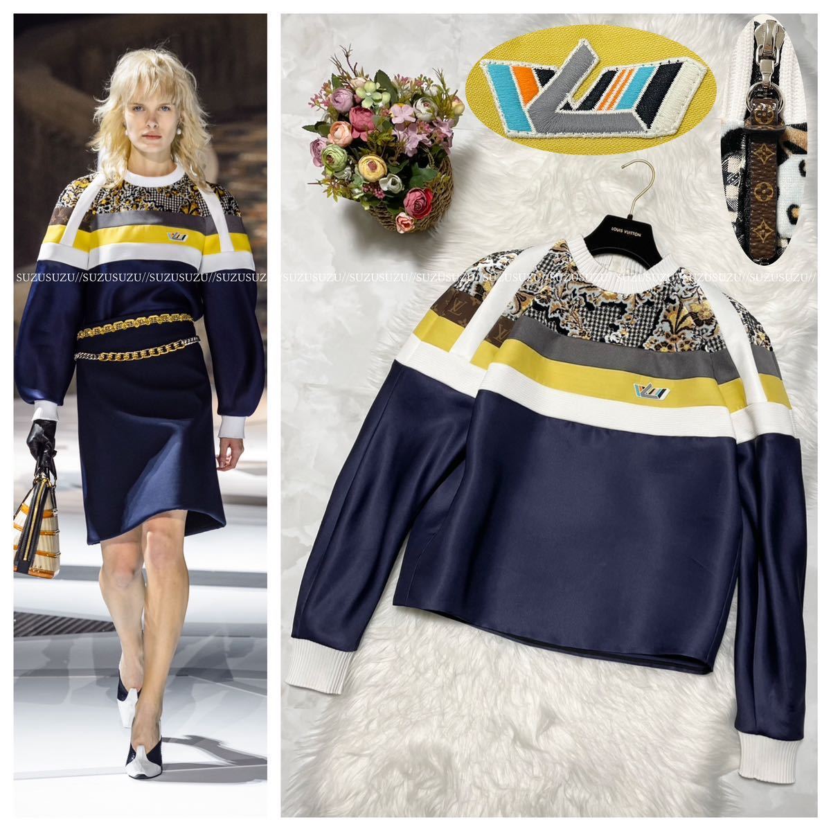 > 本物 極美品 コレクションモデル ルイヴィトン 近年モデル シルク 切替 ストライプ 長袖 トップス セーター トレーナー 38 LOUIS VUITTON
