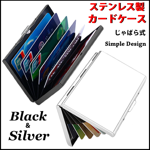 - カードケース ステンレス製 薄型 スキミング防止 じゃばら式 オシャレ 6枚収納 シルバー