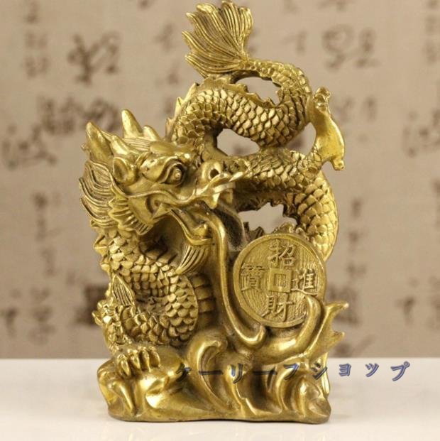 - 【ケーリーフショップ】置物 龍 古銭 古錢 五本爪 龍 竜 真鍮 ブロンズゴールド 龍の置物 ドラゴン 置物 風水
