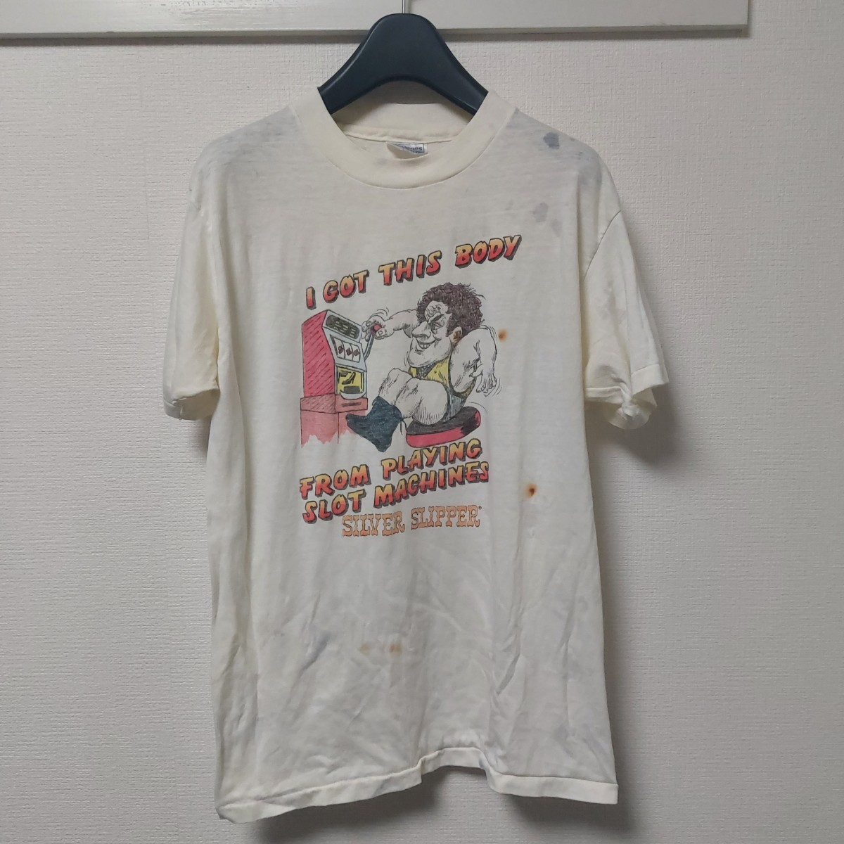 - 90年代 アメリカ製 シルバースリッパーカジノ 袖シングルステッチのヴィンテージ Tシャツ 白 ホワイト サイズL 05B2302