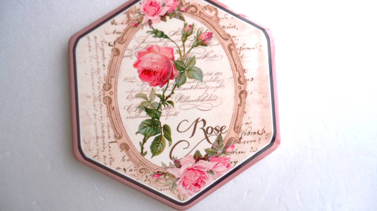 - 新品 ローズ柄プリント 六角形 鍋敷き バラ