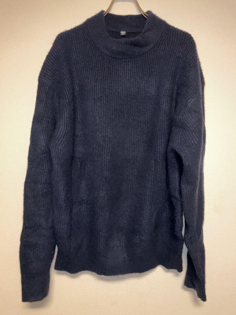 - UNIQLO ユニクロ ニット セーター 編み込み ネイビー ウール混 サイズM
