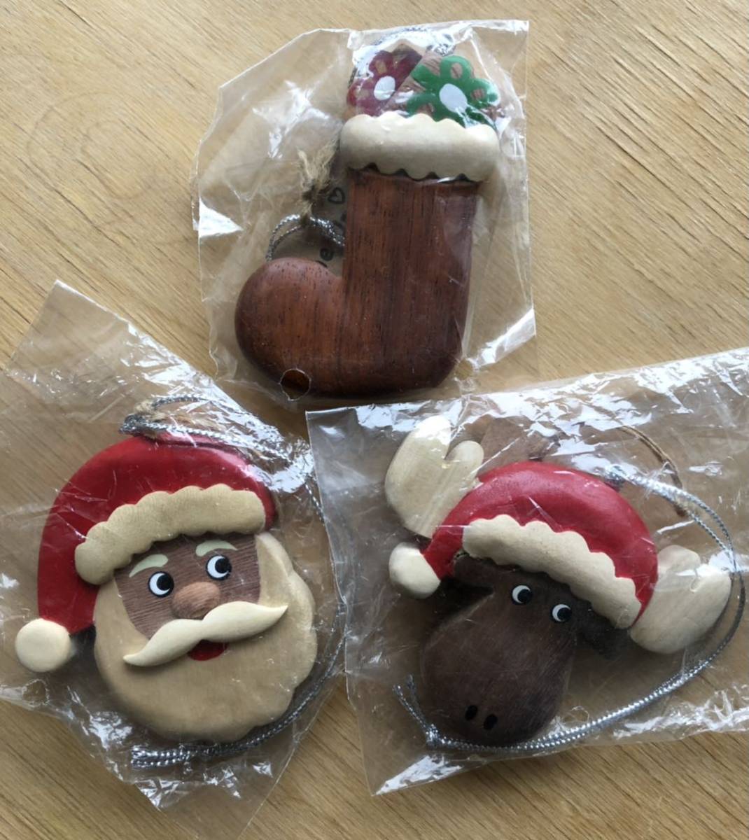 > 送料込り 新品 入手困難 クリスマスオーナメント 3個セット 木製 輸入雑貨 サンタクロース トナカイ ブーツ クリスマスツリー クリスマス