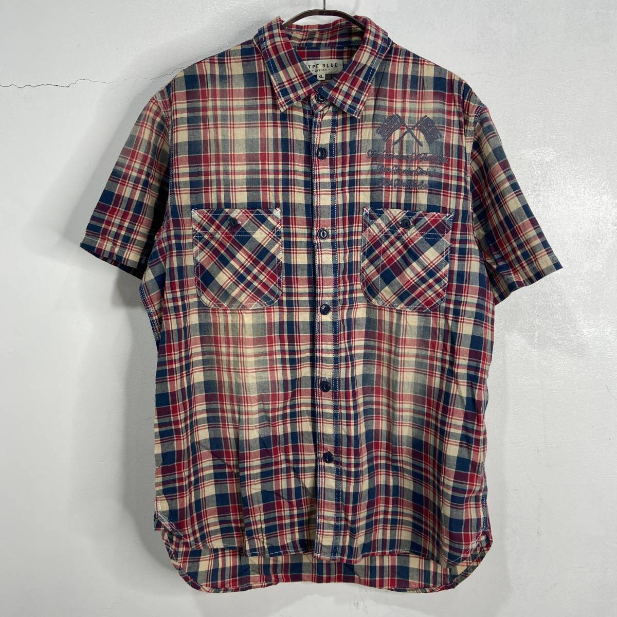 > ☆送料無料☆AVIREX アヴィレックス☆半袖インディゴチェックワークシャツ☆XL☆c23