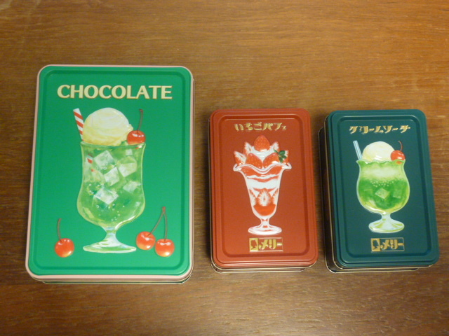 - 値下げ【3個セット】メリーチョコレート キャンディチョコレート アソートメント缶 クリームソーダ缶 いちごパフェ缶 空き缶