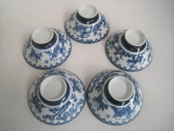 - 未使用 陶器 ご飯茶碗 5客 お茶碗 茶碗 レトロ 子供柄 外径12×H5.5㎝ /19N3.16-26