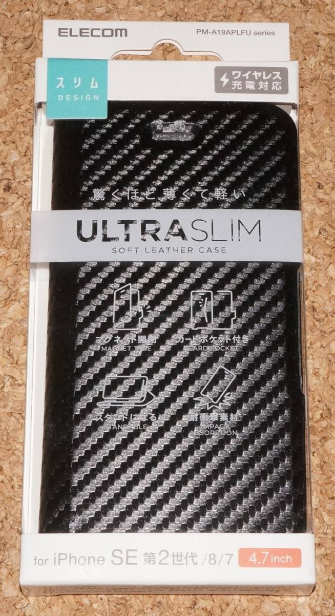 > ★新品★ELECOM iPhone SE2/SE3/8/7 レザーケース Ultra Slim カーボン調 ブラック