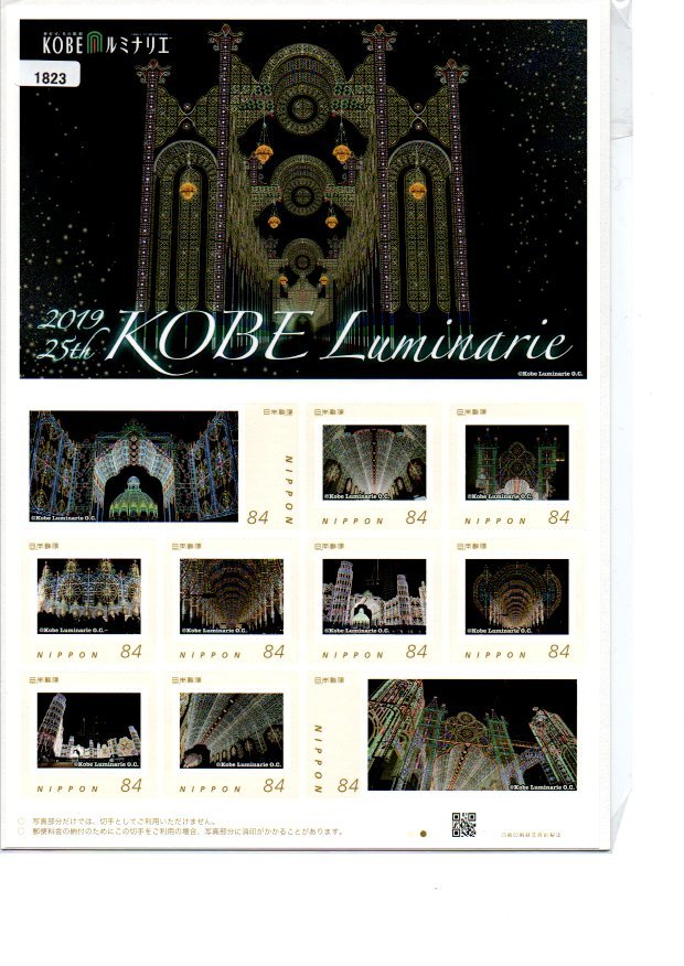 - 1823★フレーム切手 KOBE ルミナリエ 2019 25回 84円x10★