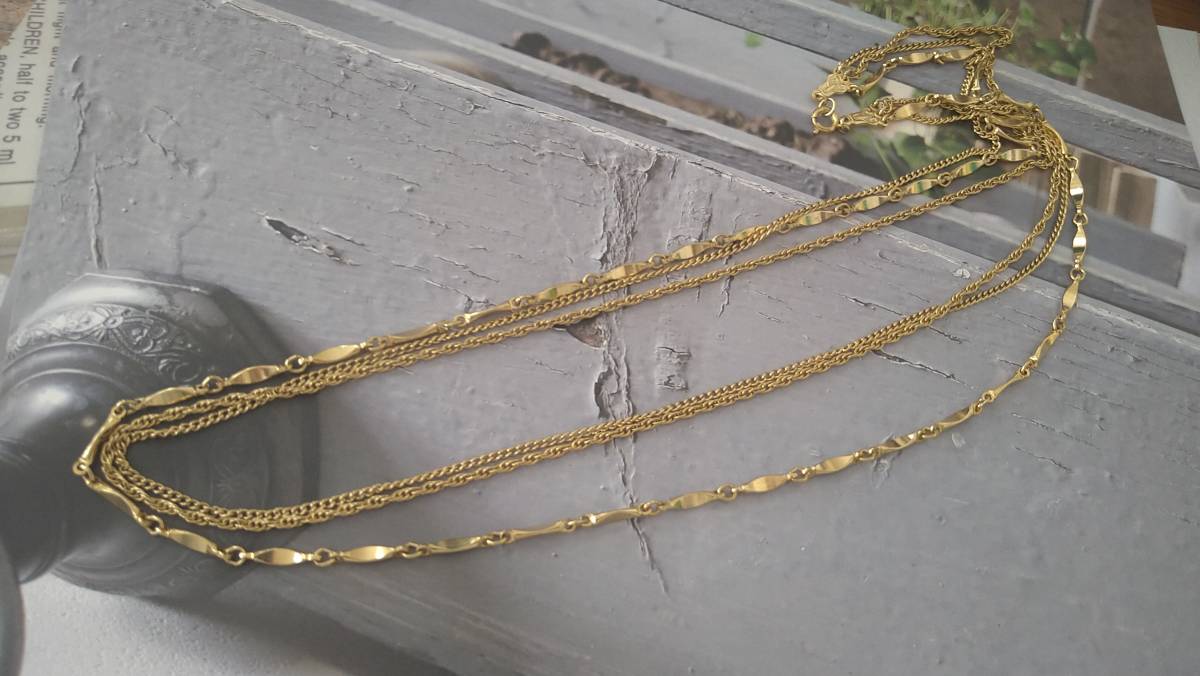 - エレガントな印象 ゴールドカラー 3連・ロングネックレス