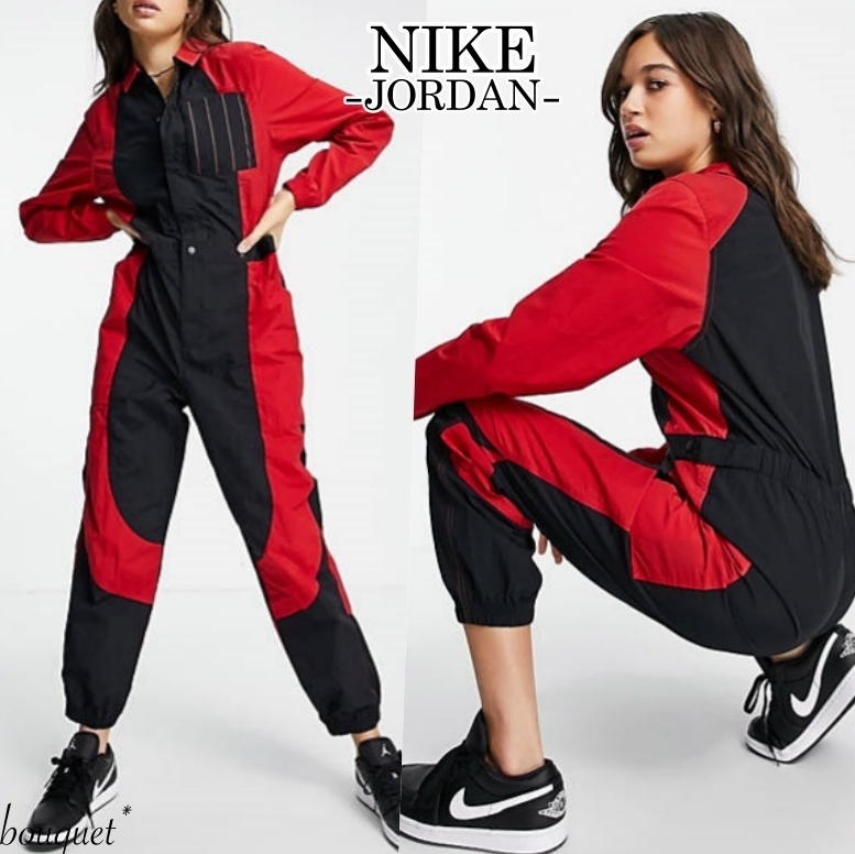 > L ナイキ ジョーダン レディース ジャンプスーツ 検 ツナギ フライトスーツ WMNS オールインワン オーバーオール サロペット 黒/ブラック