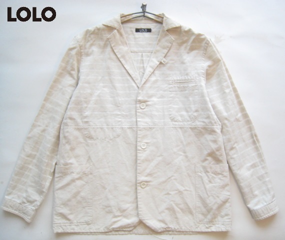 > 美品日本製!!ロロ LOLO*麻27% 春夏モデル ボーダー柄リネンコットンジャケット M ベージュ×白