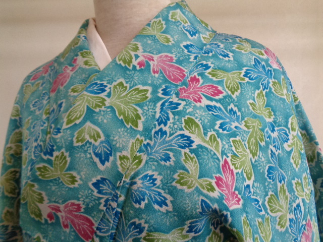 > A454-80 小紋 正絹 ちりめん 広衿 薄物 花草文 身丈142センチ 裄60センチ