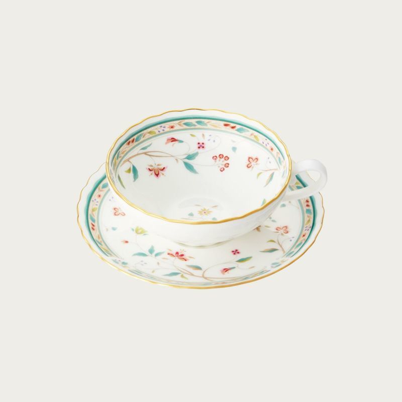 > ノリタケ! ☆花更紗ティー碗皿☆ 新品 コーヒー 紅茶 ミルク ラテ エスプレッソ 茶器 ギフト
