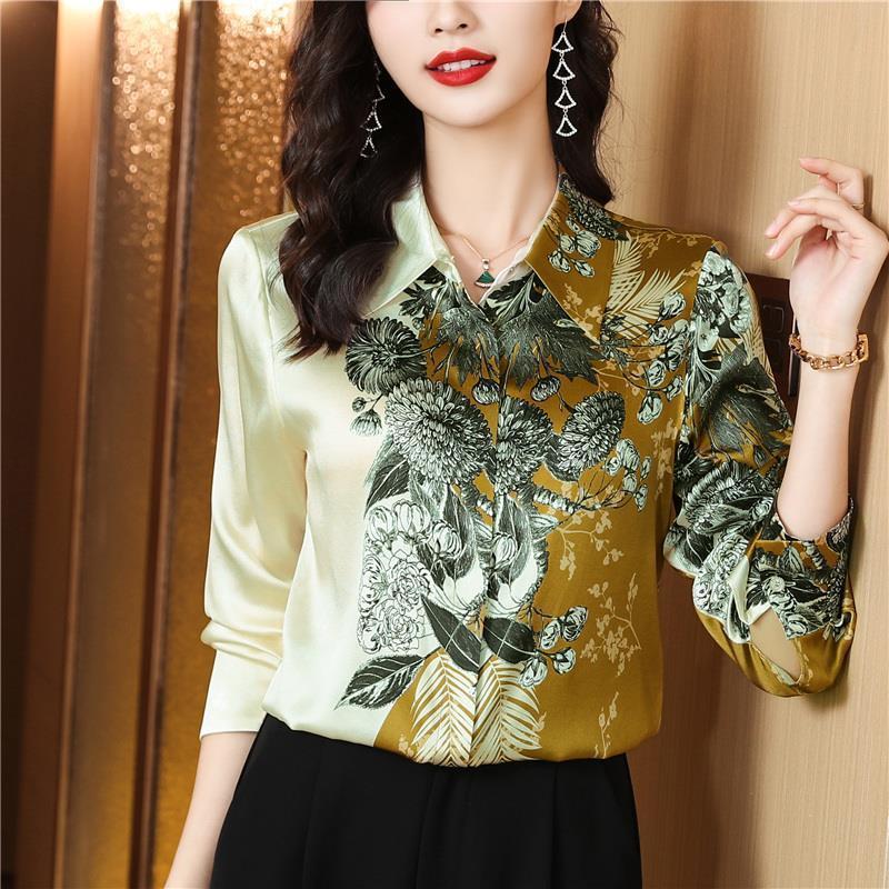 - 【オフホワイト花柄★L】レディースブラウス シャツ 長袖