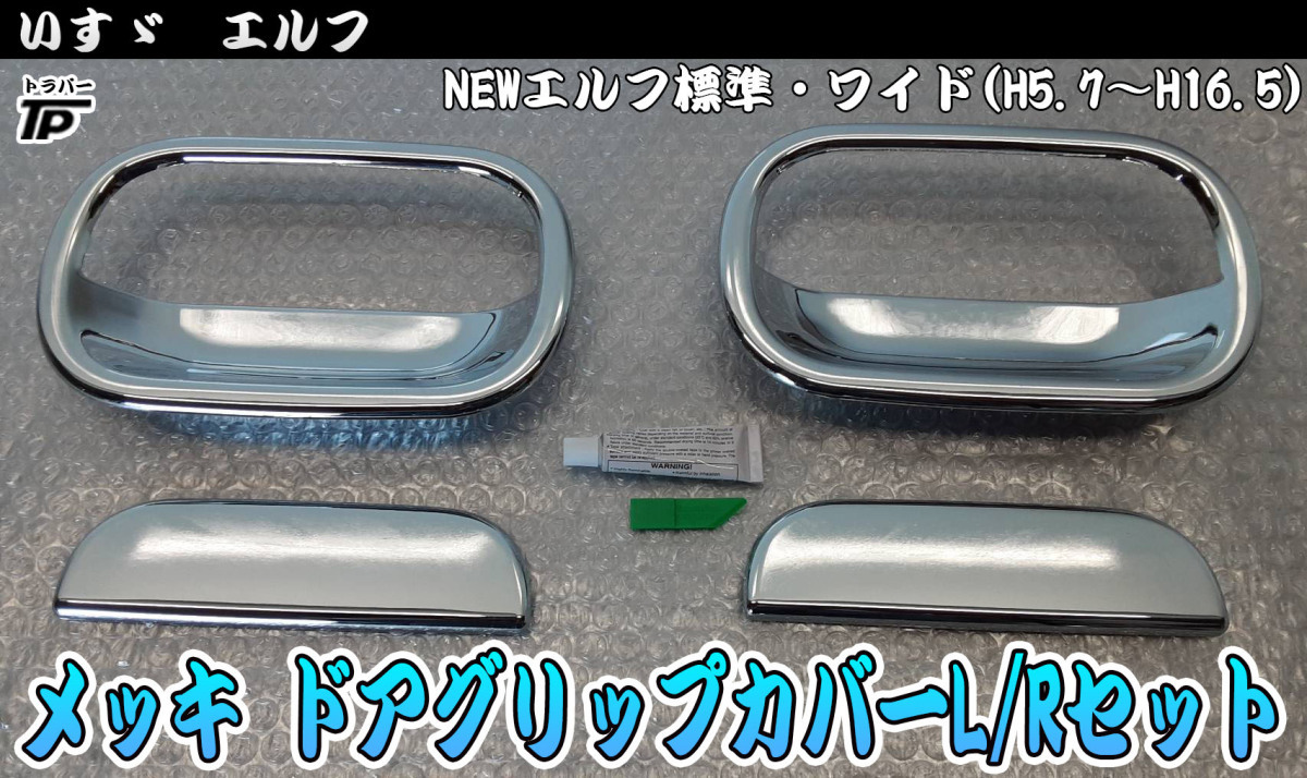 > 未使用品★いすゞ NEWエルフ メッキ ハンドルカバー ドアハンドル グリップ カバー L/Rセット 左右 社外品