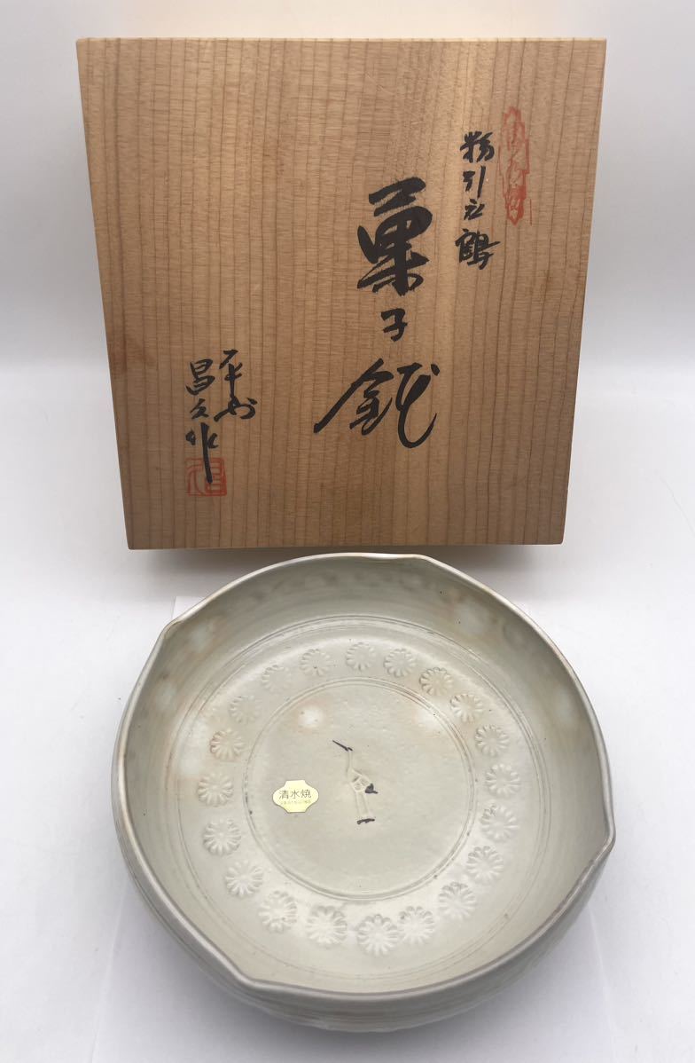 - 未使用●清水焼 昌久作 粉引鶴 菓子鉢