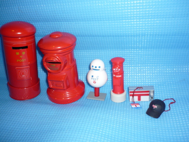 - b★未使用・非売品★郵便局 ポスト型缶貯金箱と郵便局 ガチャコレクション 2通目x4個他6個