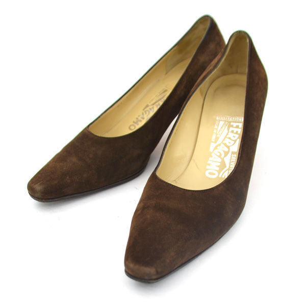 > ★ サルヴァトーレフェラガモ パンプス スウェード ブラウン レザー ヒール 約23.5cm 6 (0220433849)