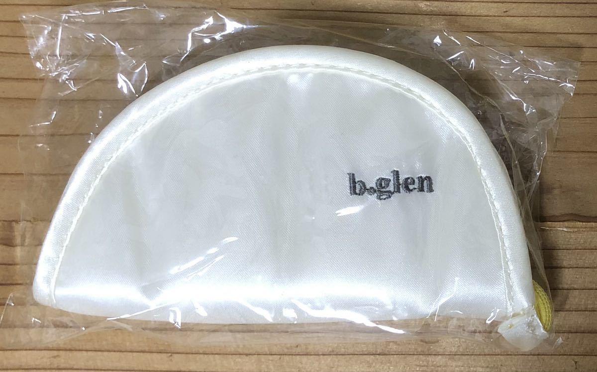- 【未使用・未開封】半円型ポーチ★b・glen★サテンホワイト★イエローファスナー★約横13×縦7.5cm