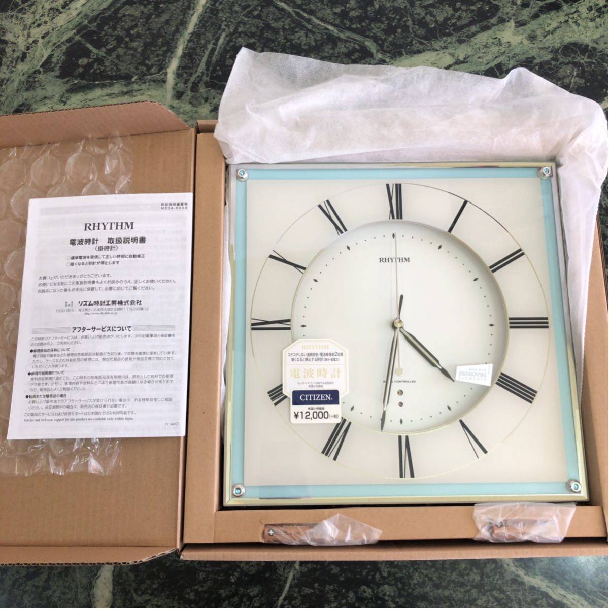 - 【新品】RHYTHM★リズム 壁掛け時計 8MY499SR04 ミレディマリン 青 白 電波時計 連続秒針 アナログ時計 CITIZEN シチズン スクエア