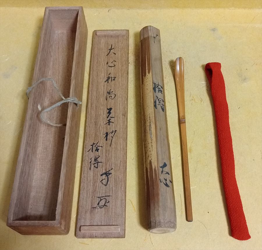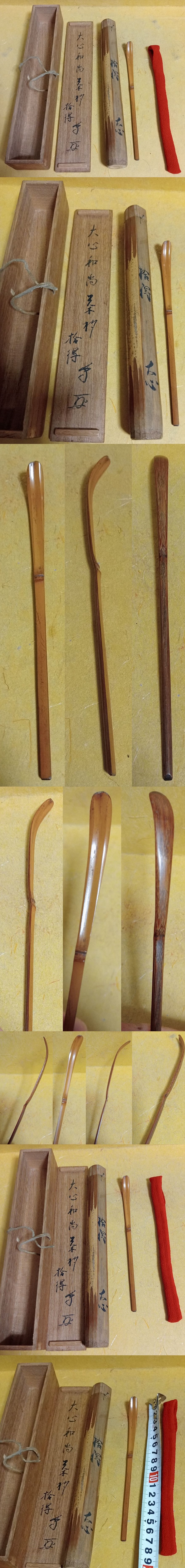 竹茶杓 前大徳寺 在銘和尚 大心義統(1657〜1730) 花押 拾得 銘 共筒 共箱