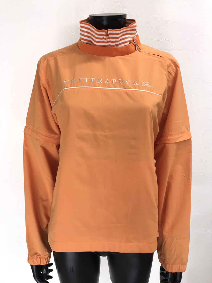- 【USED】CUTTER&BUCK カッター&バック ポリエステル 2WAY スニード 襟袖脱着 裏地メッシュ ロゴ刺繍 オレンジ レディース L ゴルフウェア