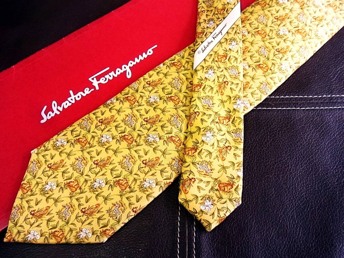 - 【在庫処分セール】5-7642z◆フェラガモ【花・シマウマ・縞馬】ネクタイ◆