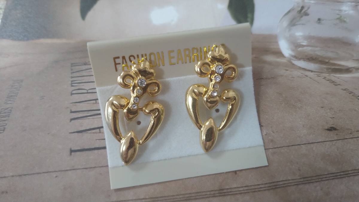 - 未使用 ゴールドカラー×ラインストーン デザイン・イヤリング