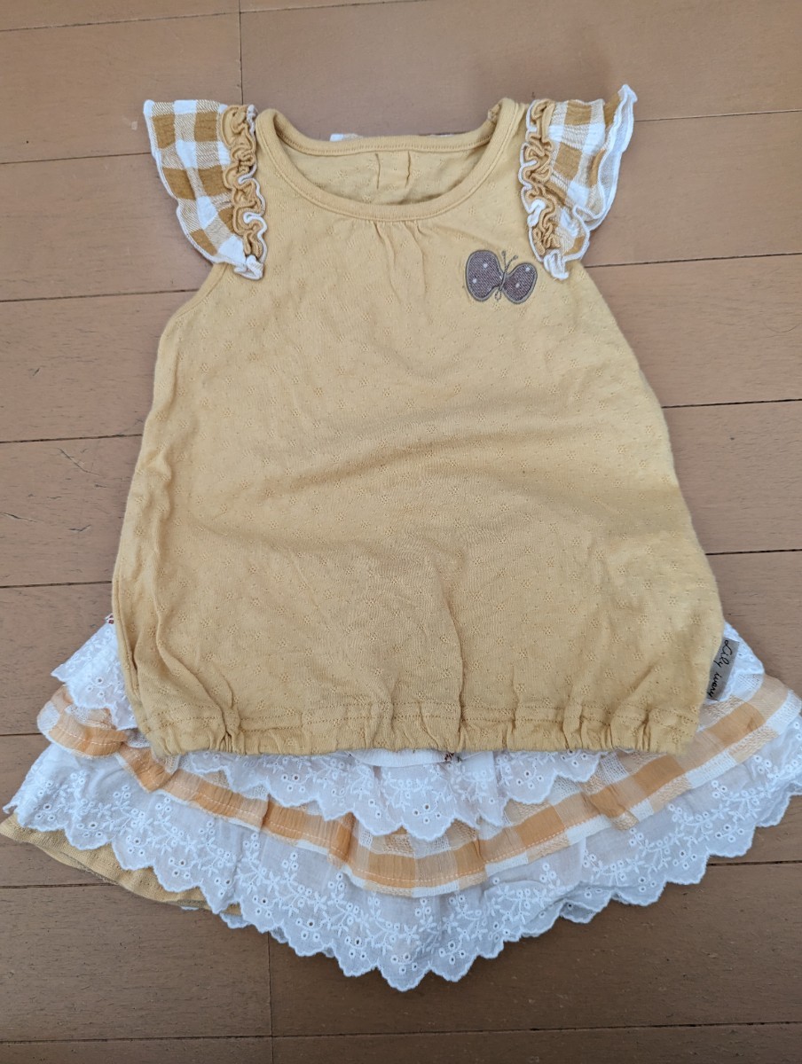 - 80女の子☆夏物2点まとめ☆キムラタンLilyivory☆クリーム色ショートスリーブカットソー・フリルスカートのようなショートパンツ☆送料込み