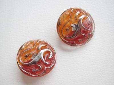 - CZグラスボタン リザード オレンジ×レッドセット