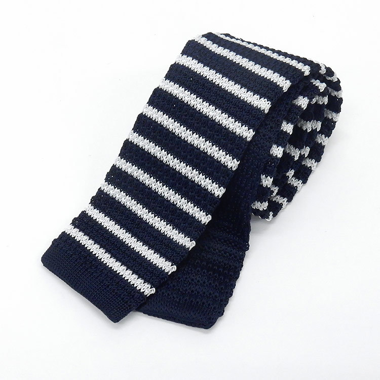 - ニットタイ スリム ネクタイ 洗濯機OK 剣先6cm 紺×白 ボーダー ポリエステル100% ナロータイ SW03-7