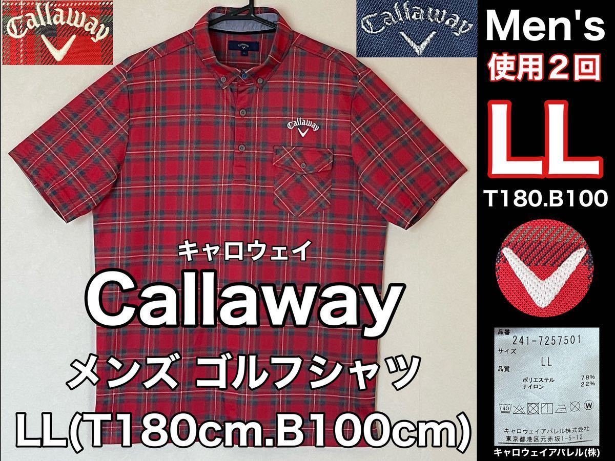 - 超美品 Callaway(キャロウェイ)メンズ ゴルフ シャツ LL(T180cm.B100cm)使用2回 レッド スポーツ アウトドア 春夏秋 リゾート 旅行トラベル