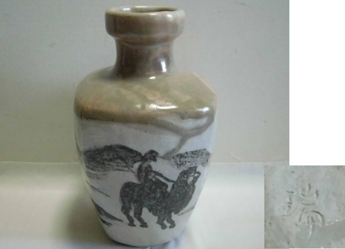 > 味わいある 花瓶 瑞 ラクダ柄 徳利形 四角 飾り花瓶 置物 フラワーベース 花器 華道 花入 陶器 工芸品 レトロ