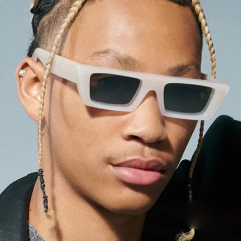 - メンズ サングラス スクエア型 長方形 グレー UV400 シンプル おしゃれ 色付き