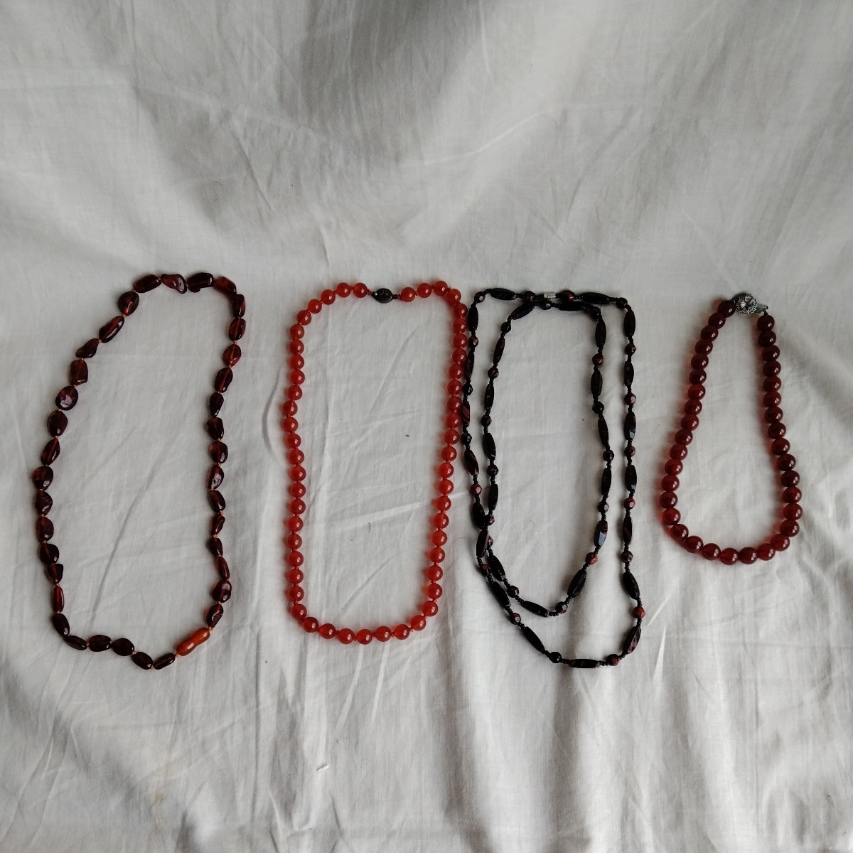 - ストーン調ジュエリー レッドカラーアクセサリー 4点