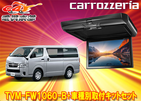 - 【取寄商品】カロッツェリアTVM-FW1060-B+KK-Y105FDLハイエース/レジアスエース(200系)用10.1V型フリップダウンモニター+取付キットセット