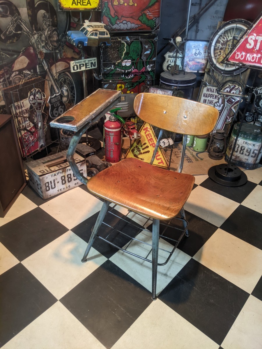 > アメリカンヴィンテージ アメリカン スクールデスク(改)サイドテーブルチェア #ドリンクホルダー コーヒーテーブル インダストリアル家具