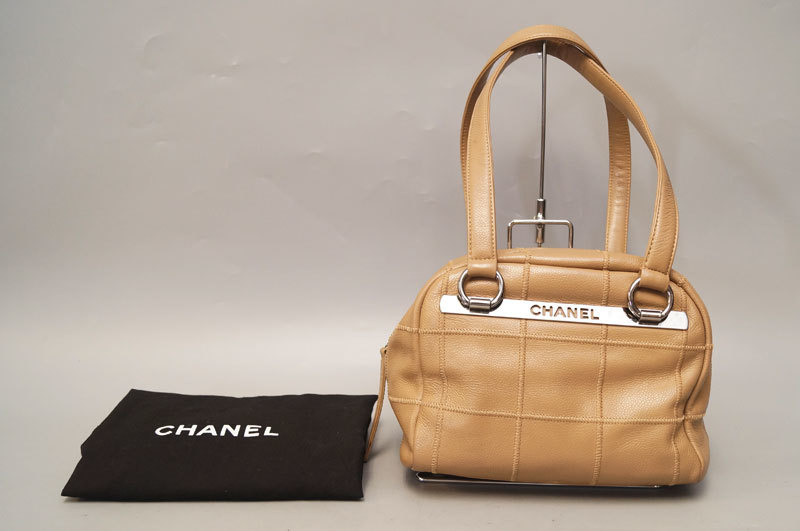 - yj18-CHANEL シャネル バック ベージュ チョコバー レザー キャビアスキン ショルダー ロゴプレート 保存袋付 イタリア製