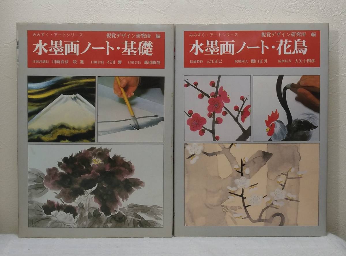 - ア■ 水墨画ノート 基礎・花鳥 2冊セット みみずく・アートシリーズ 視覚デザイン研究所