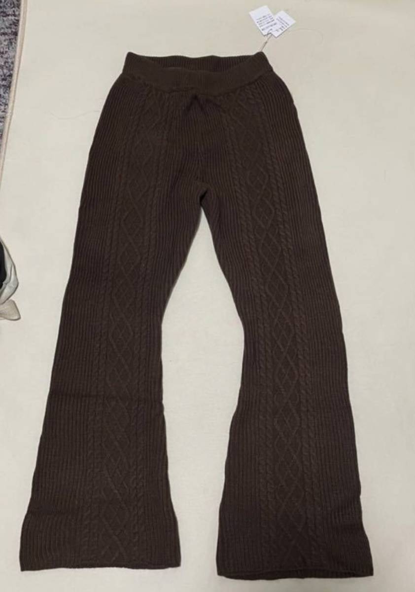 - 新品 FUN ファン ニットパンツ ブラウン 茶 ケーブルニット フレアパンツ